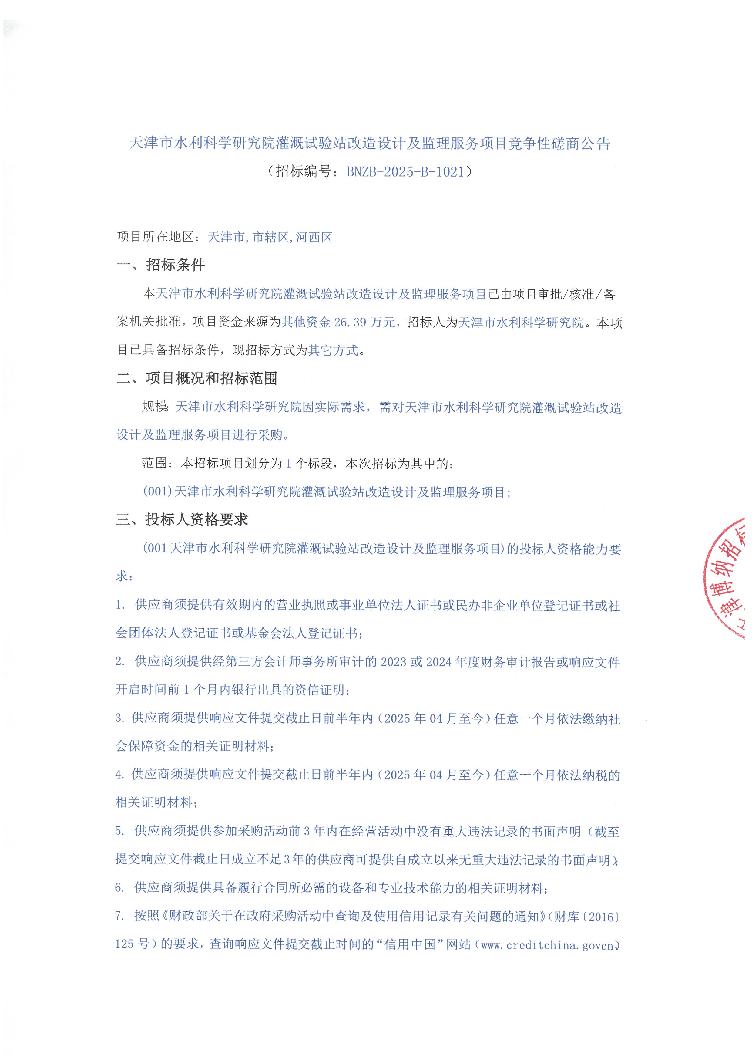 天津市水利科学研究院灌溉试验站改造设计及监理服务项目